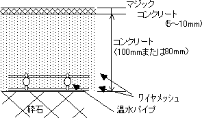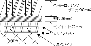 | 温水パイプを埋めて、各仕上げ舗装をします。 |